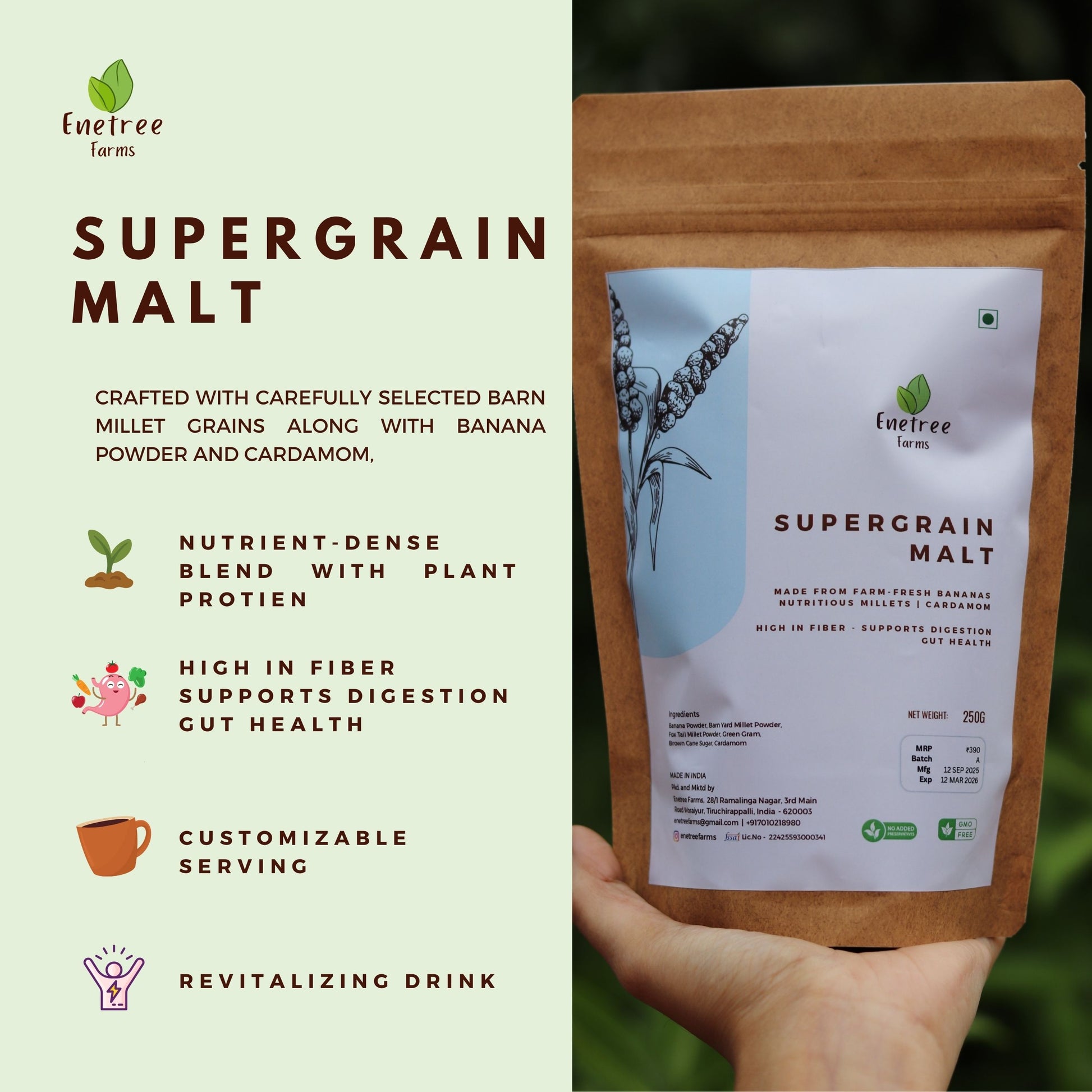 What You Get: 1 Pack of Banana Bites 100g + 1 Pack of Supergrain Malt 250g